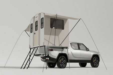 CAMP365 – creators of the world's first fold-out cabin camper – announces this week a new platform in the pickup-camper category, the CAMP365 T Model. Made in the USA and designed to meet the needs of electric vehicle owners looking for a truck bed option that has a minimal impact on range, the T Model works with the Rivian R1, Ford Lighting, Tesla Cybertruck, and other mid-size trucks.
