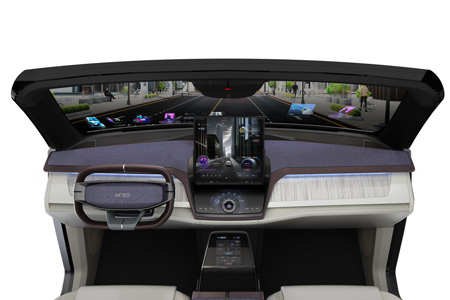 M.VICS, Mobis's integrated cockpit platform, brings together its advanced infotainment technologies, now refreshed with the 7.0 upgrade. Key features include a holographic windshield display that projects driving information directly onto the glass, a vertically expandable 18.1-inch large display, and a redesigned center-console interface that balances aesthetics with intuitive controls.